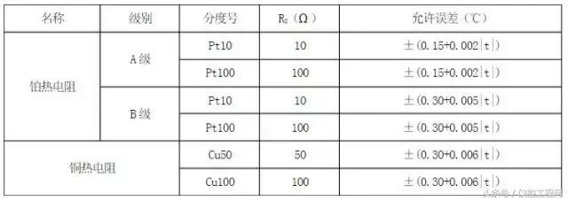 注:① R0為0℃時(shí)的標(biāo)準(zhǔn)電阻;② t為被測溫度。