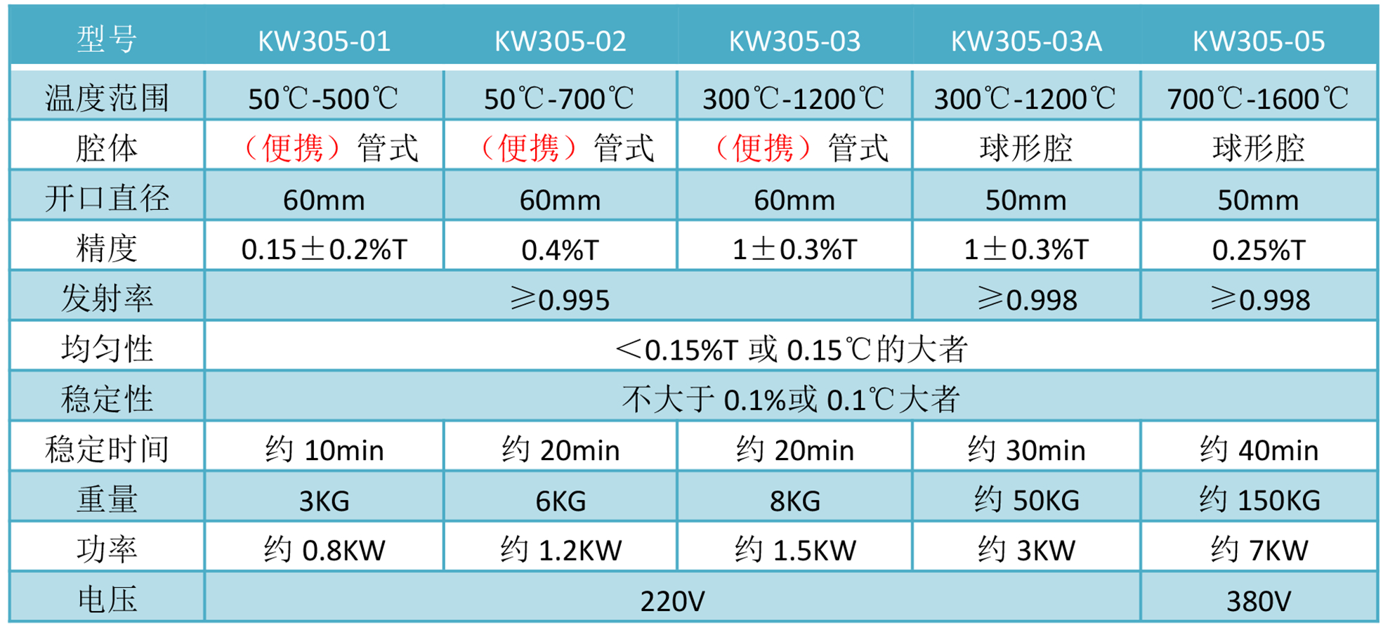 KW305系列黑體爐,主要用于校準輻射溫度計、紅外熱像儀等輻射測溫儀器。黑體爐的主要技術指標為黑體空腔發(fā)射率、靶面的均勻性、控溫穩(wěn)定性和空腔輻射溫度的穩(wěn)定度。除黑體腔的特殊設計外,腔體內壁面溫度均勻性,是黑體技術的關鍵之一。