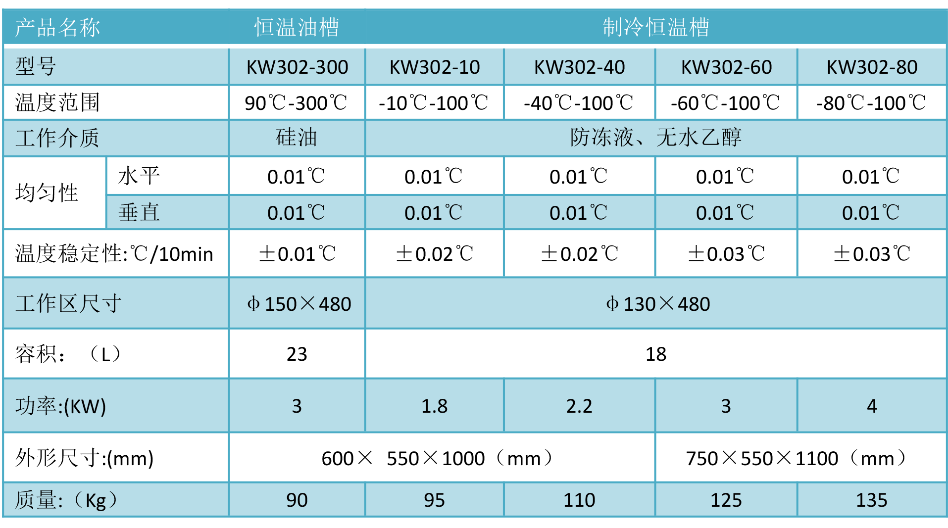 KW302系列液體恒溫槽是一種計量級別的溫場恒溫源,具有穩定性好、溫場均勻、控溫精度準確、結構緊湊、操作方便等特點。此系列產品中的制冷恒溫槽采用壓縮機制冷系統,可直接進行快速降溫。外殼采用不銹鋼的噴漆工藝處理,使其達到了良好的外觀處理效果。